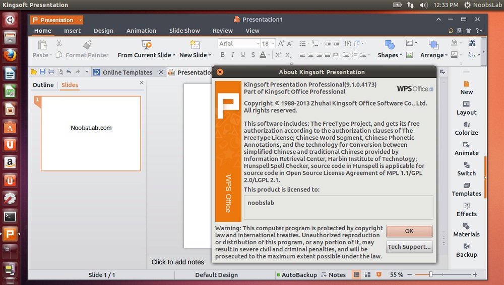 sudo dpkg -i kingsoft-office-NoobsLab.deb